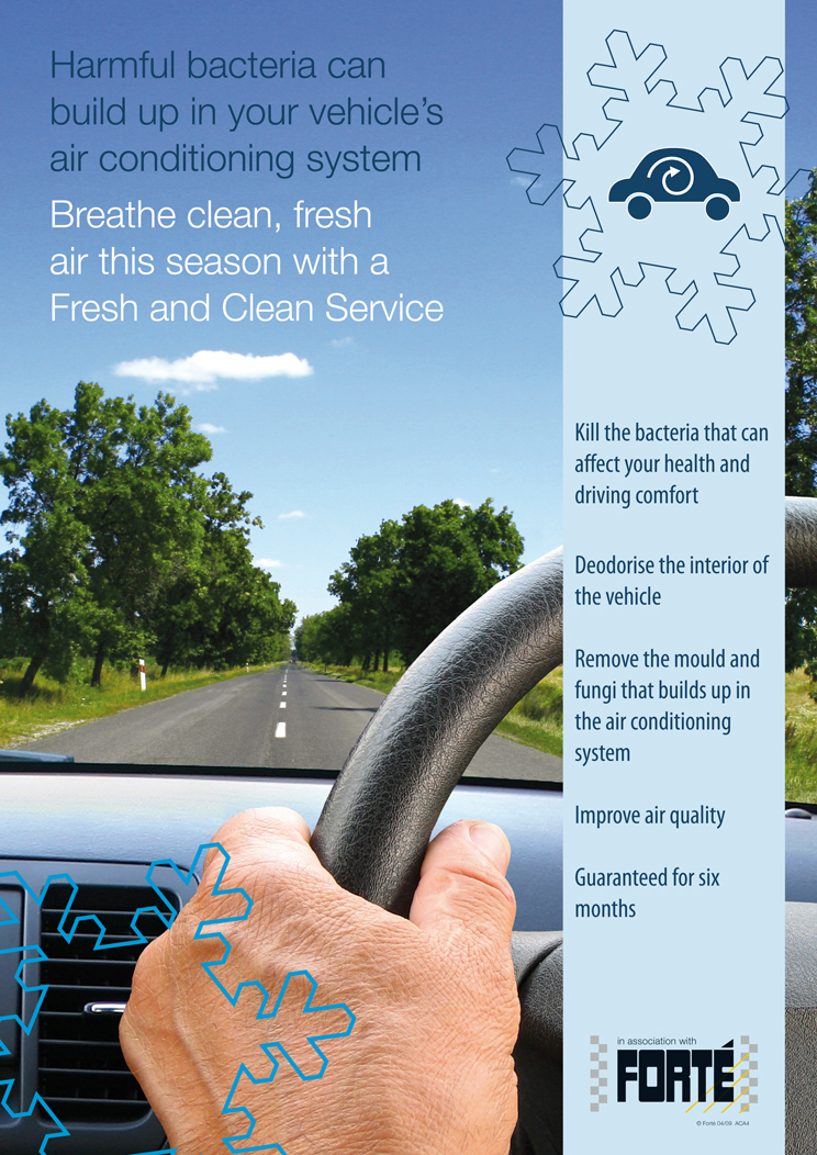 Our technicians will carry out a Fresh and Clean Service on your vehicle's air conditioning system to remove the harmful bacteria that grows.